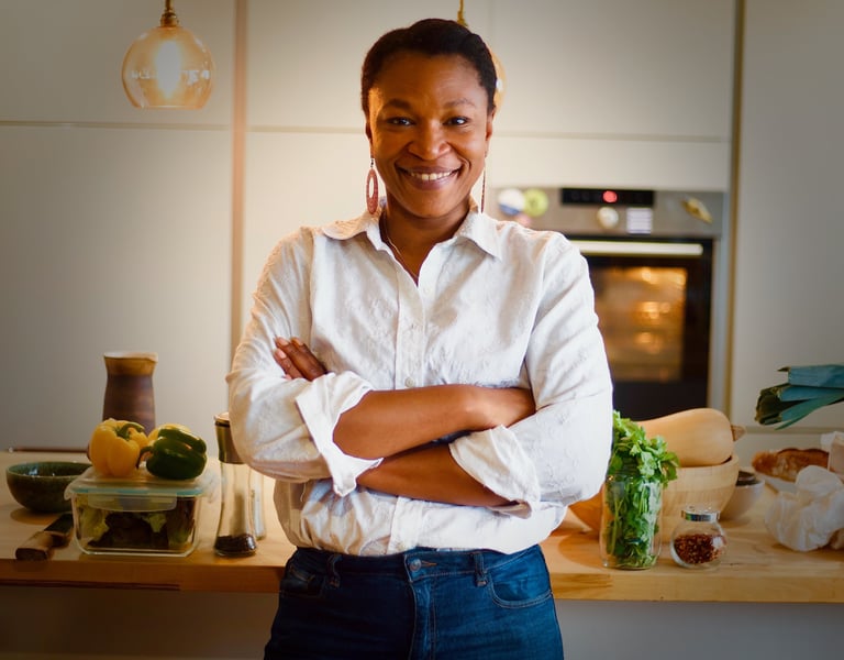 Je suis Marie-Pierre Denis. Une grande gourmande devant l'éternel, et passionnée de cuisine. J'ai toujours été exigeante avec ce que je mange au quotidien, à chaque repas j'ai un besoin vital que mes papilles soient enthousiasmées. Cette exigence je la met à votre service. J'ai eu une première vie professionnelle dans l'audiovisuel au service de la création, mais une envie de cuisiner pour les autres a toujours mijoté dans un coin de ma tête. Le Batch Cooking s'est imposé comme une évidence. La création toujours, mais au service de vos papilles. Je suis autodidacte, et grâce un super pouvoir donné par dame nature qui me permet de mémoriser toutes les recettes que je vois en images (je sais, c'est bizarre, mais super pratique!); j'ai découvert et testé une grande quantité de recettes en provenance du monde entier, des recettes végétariennes, végétaliennes délicieuses!